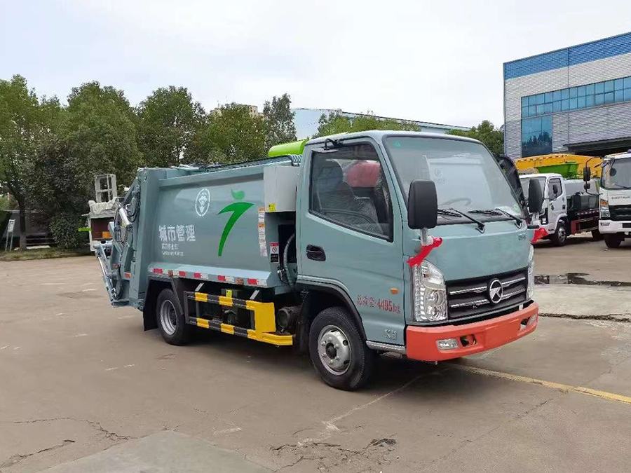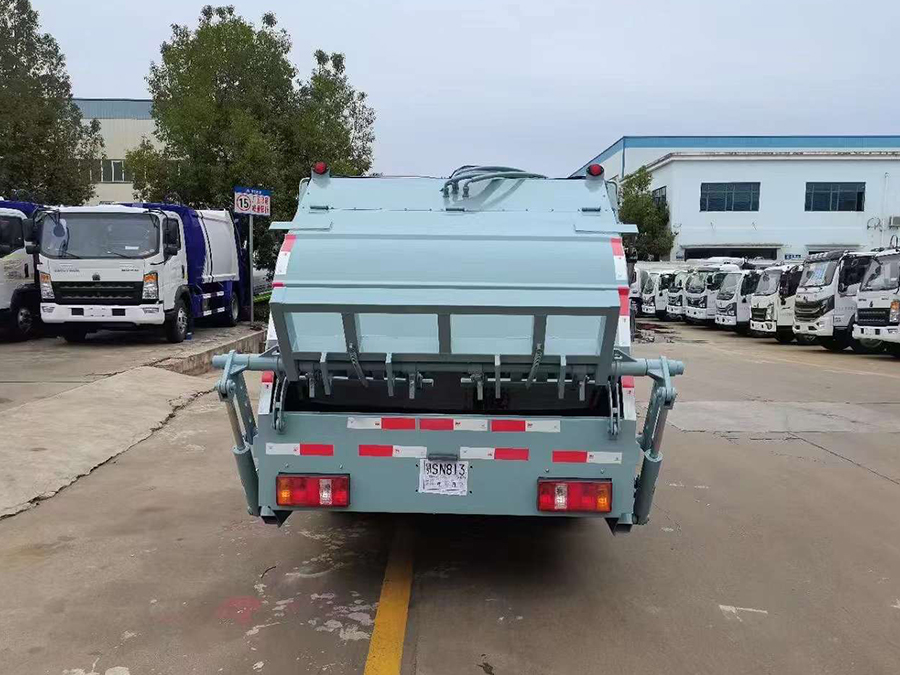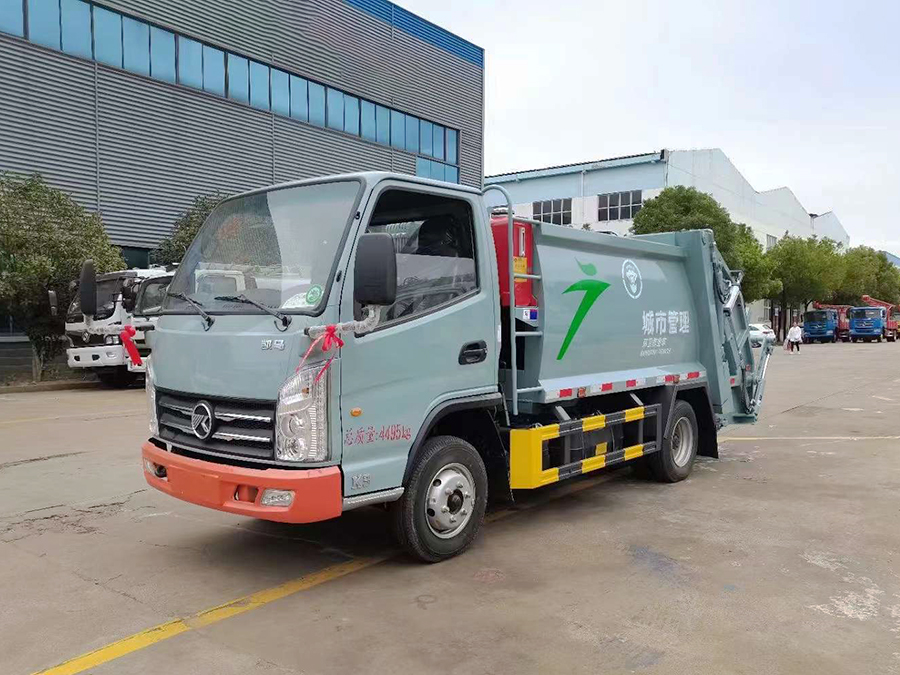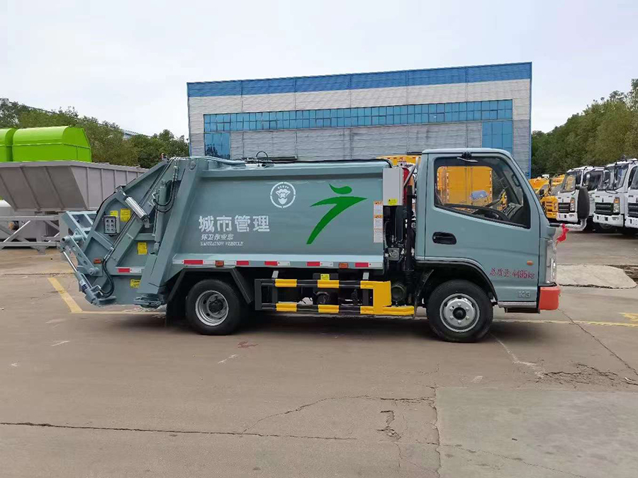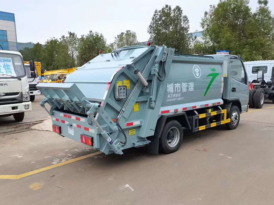 廂體有效容積4.5方,弧形箱體,采用專用鋼板制作,配套威森博樂多路閥,徐州全球通液壓油鋼管,皖液液壓油泵,填裝器舉升油缸帶液壓鎖裝置,采用PLC電控系統,帶一鍵操作和手動操作兩種模式,電控操作盒3個,分別安裝在駕駛室內及車尾部各一只,方便操作,帶污水收集箱,尾部帶厚橡膠密封壓條。