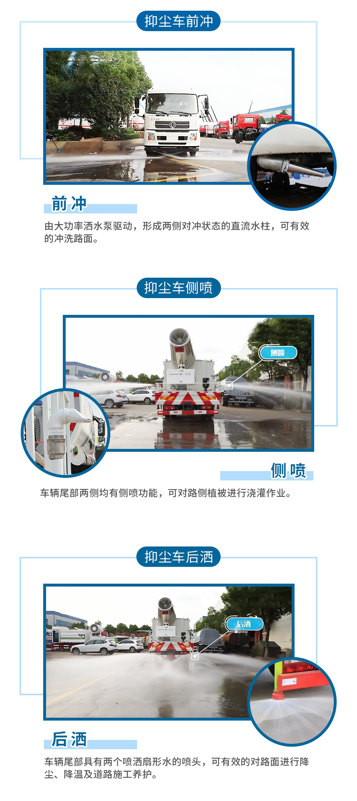 標(biāo)配:前沖、后灑、側(cè)噴、后平臺高炮、自流閥、消防接頭、濾網(wǎng)、噴頭、帶自吸自排。