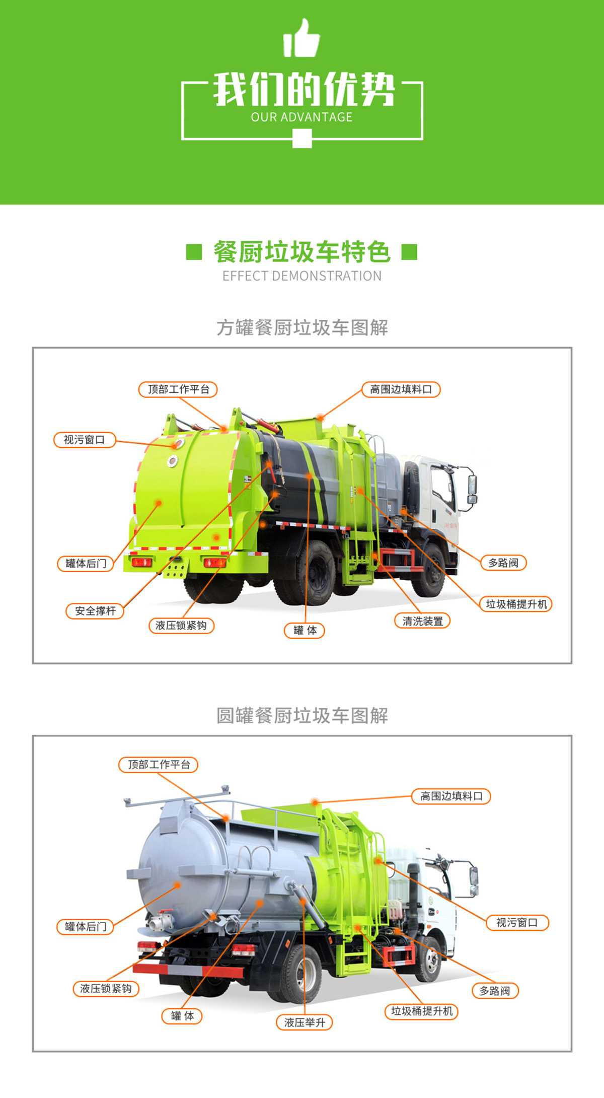 備注:1、該車用于餐廚垃圾收集清運,主要專用裝置為箱體、上料機構提升架、推鏟。2、側防護材料采用