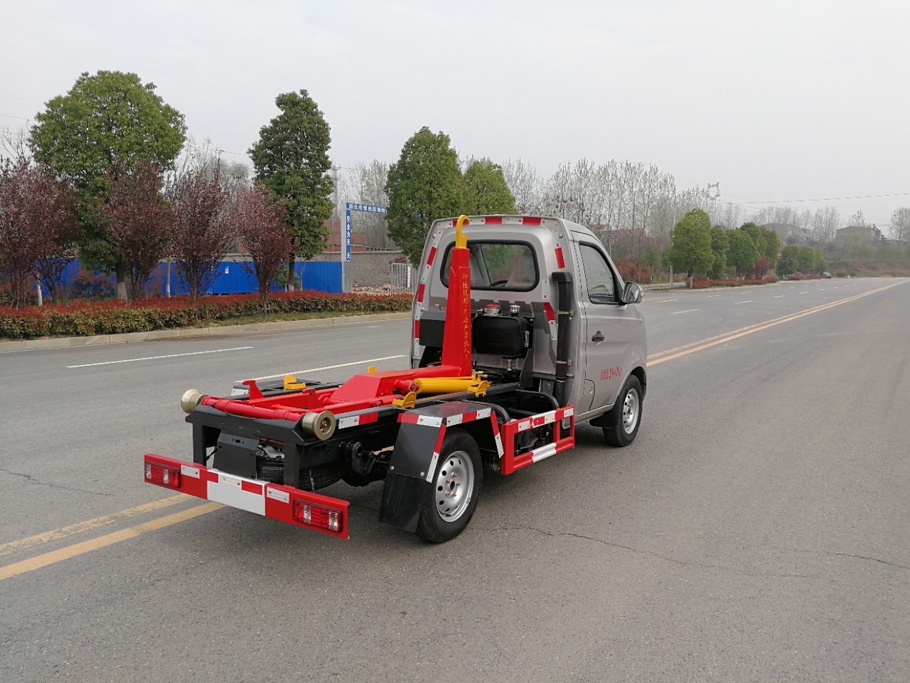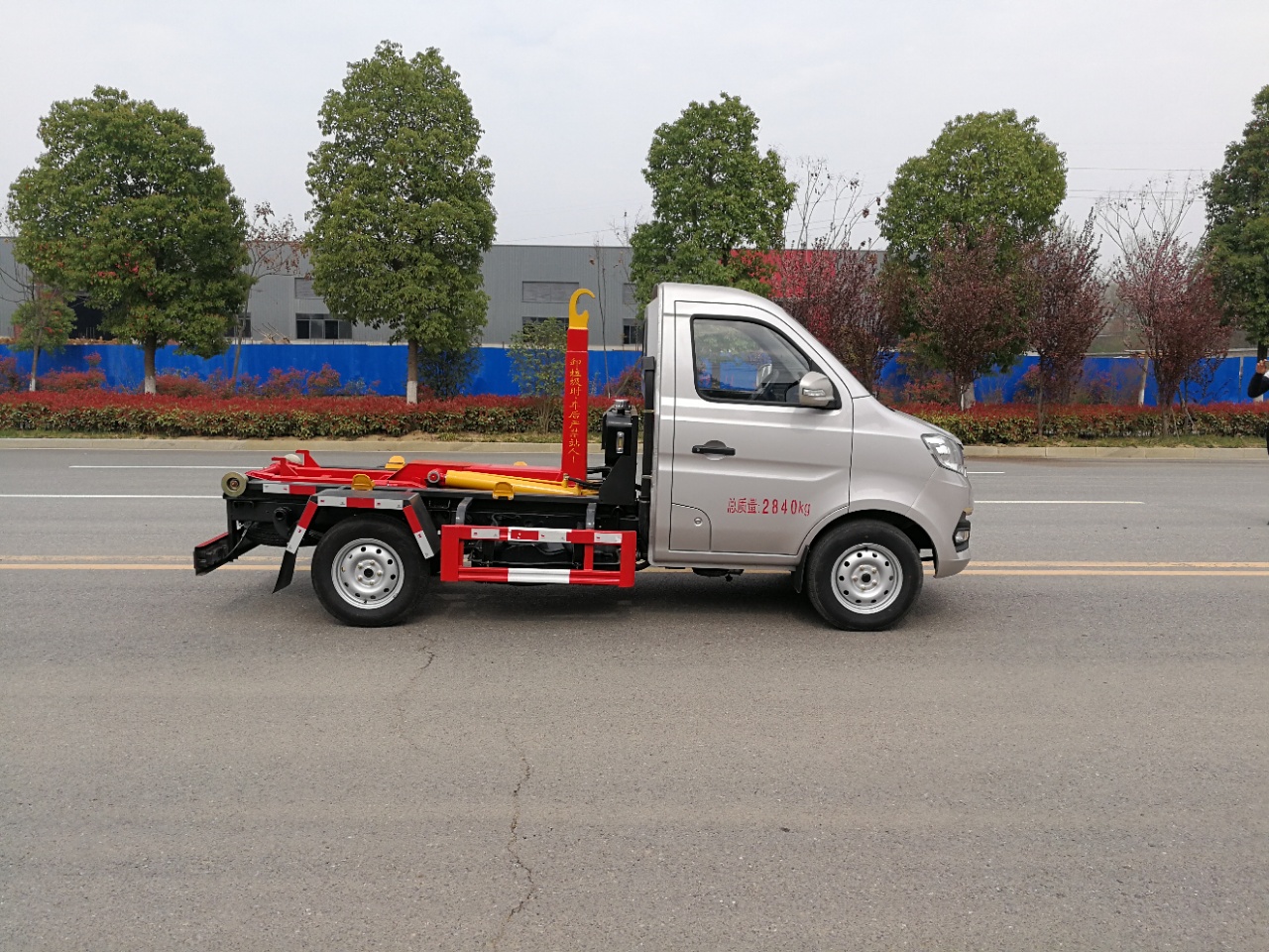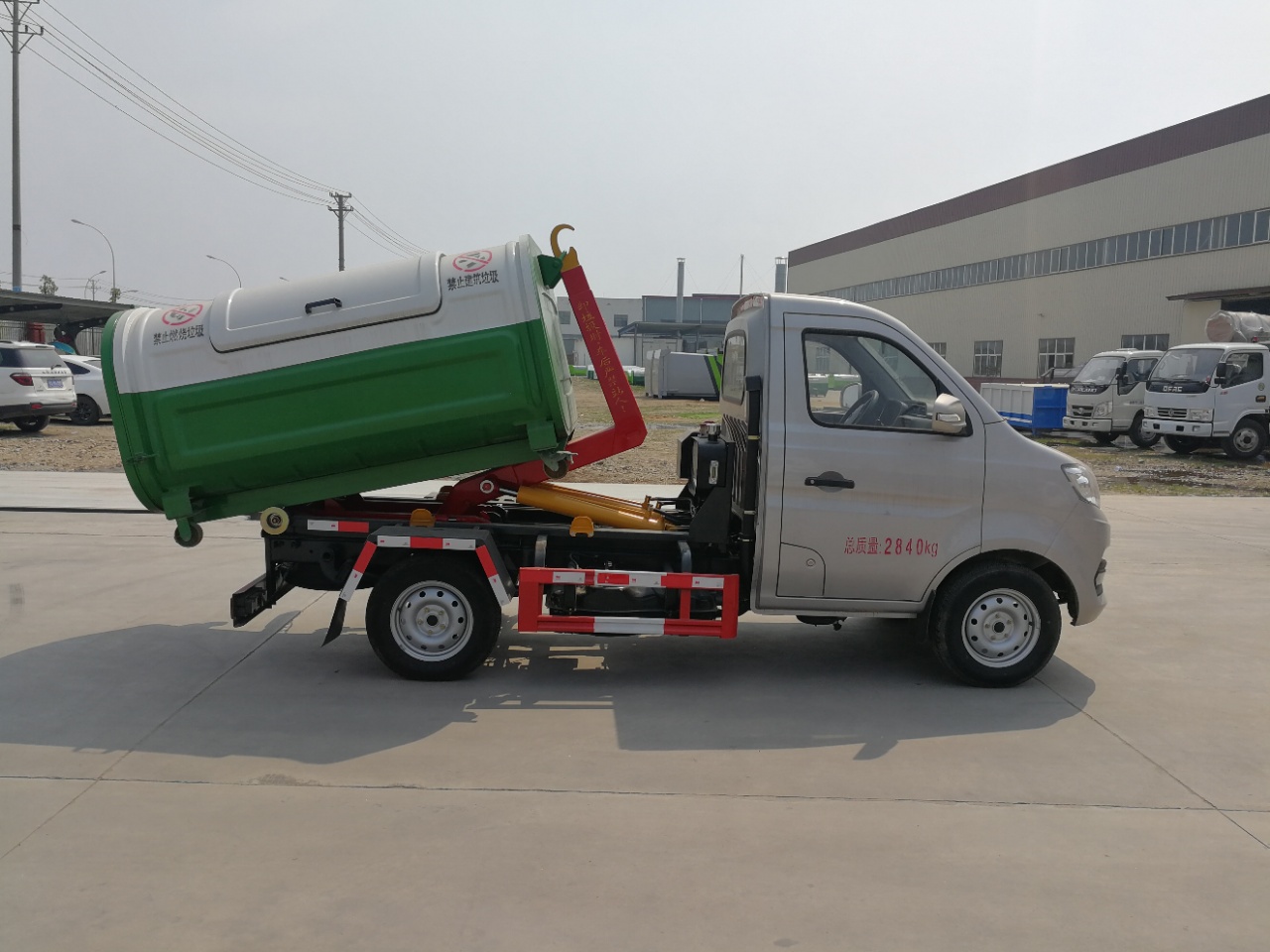 勾臂垃圾車標配:由液壓系統、操作系統、拉臂,組成。舉升油制缸為國內知名液壓件廠家生產的雙作用油缸,多路閥液壓控制,操作員手動控制垃圾廂吊上放下,帶自卸功能,上下一次工作循環時間≤40秒。垃圾箱冷板壓制垃圾箱,帶后門密封圈,帶金屬滾動輪。