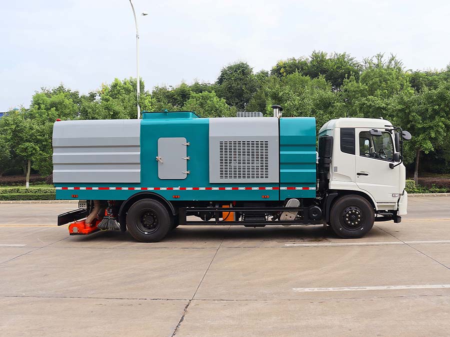 隨底盤選裝駕駛室;整車長/軸距對應關系(mm):8700/5300,8400/5000,8100/4700;側防護裝置材料為Q235,螺栓連接;后防護裝置材料為Q235,焊接連接,截面尺寸為:120×50(mm),離地高度為:500(mm);ABS型號/生產廠家:3631010-C2000/東科克諾爾商用車制動系統(十堰)有限公司,ABS 8/東科克諾爾商用車制動系統(十堰)有限公司,4460046450/威伯科汽車控制系統(中國)有限公司,J ABS/焦作博瑞克控制技術有限公司;該車專用裝置主要由箱體、吸盤組成,用于路面吸塵作業.